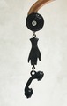 レトロな受話器とハンドパーツの片耳用ピアスです。 受話器=25×10mm、ハンドパーツ=22×10mm、着用時長さ=67mm