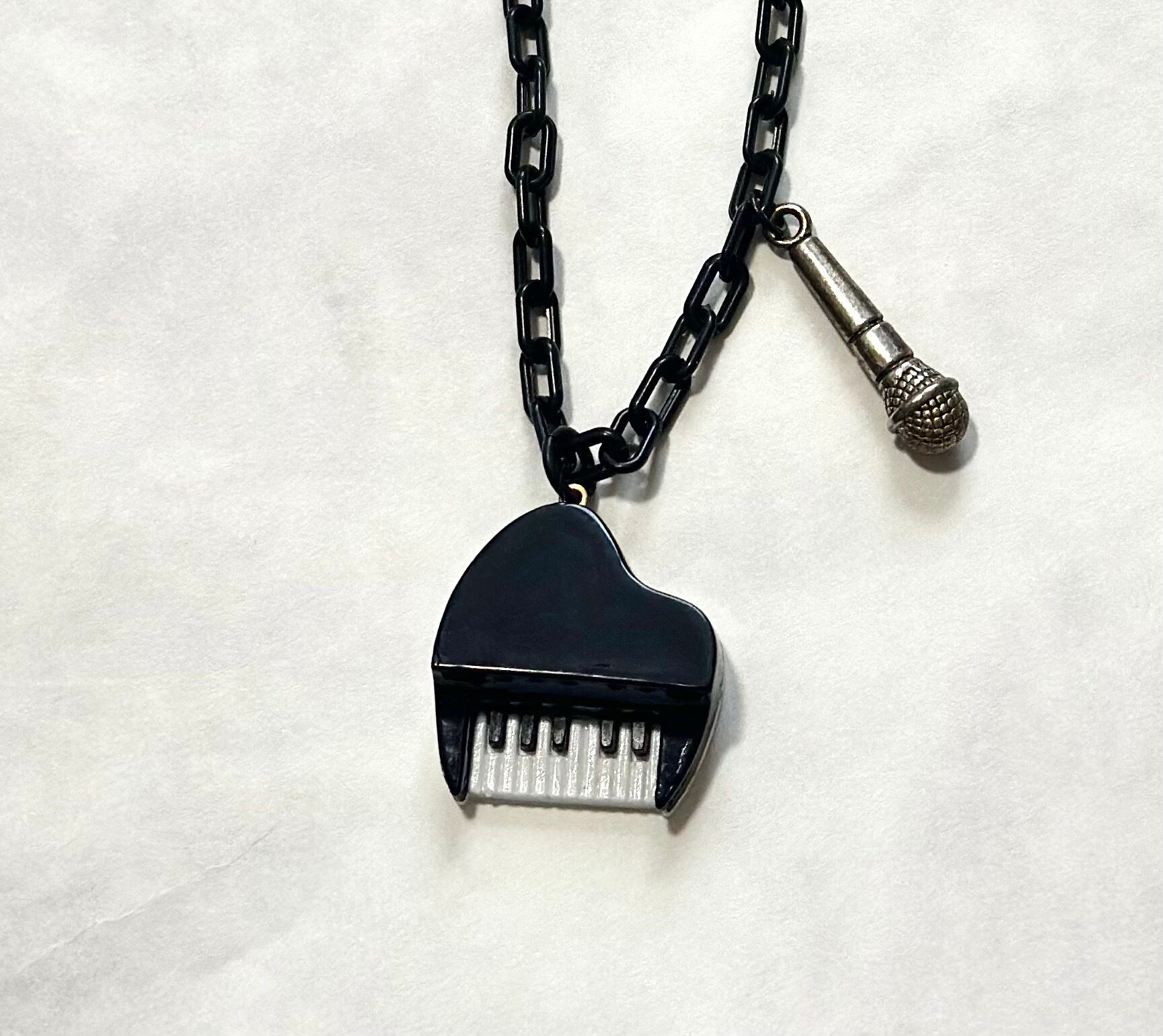 プラ素材のピアノパーツとプラチェーンを組み合わせました。音楽好きの方やピアノを習っている方にオススメ。さりげないアクセントとしても活躍してくれること間違いなしです。